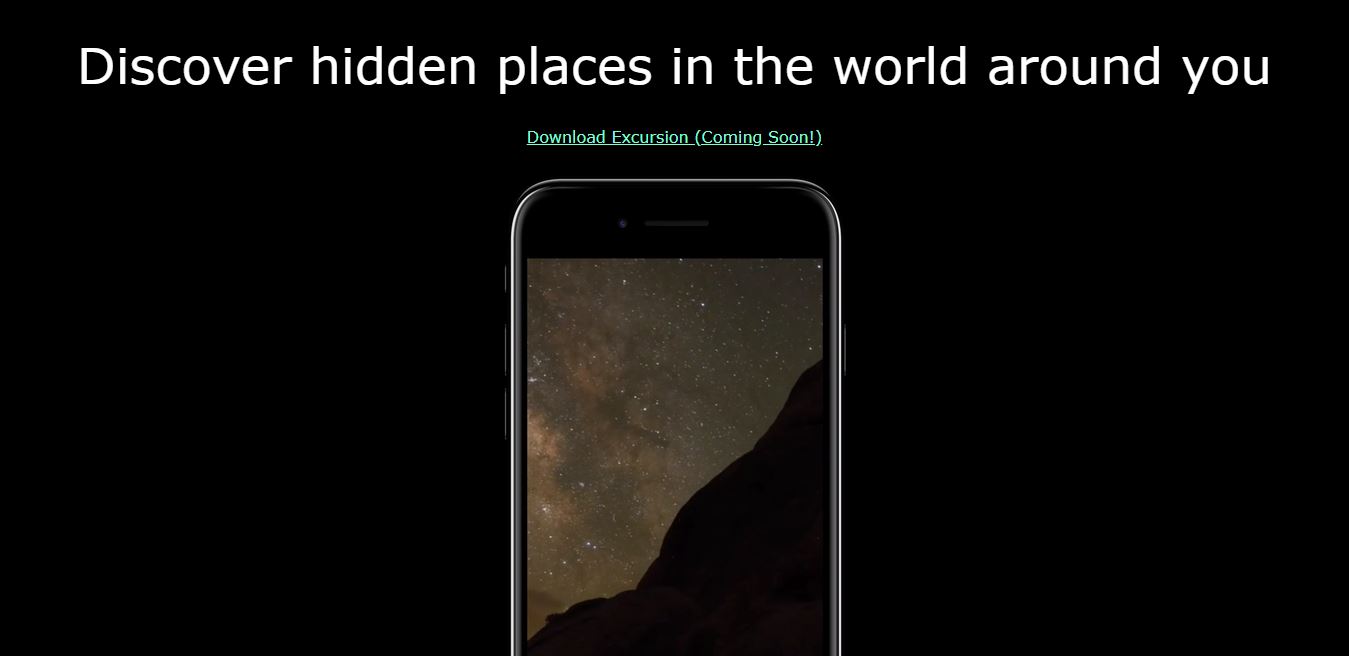 This minimalist landing page is designed to advertise a mobile app called "Excursion". Skills used include: HTML, CSS, Command Line, Git and GitHub.