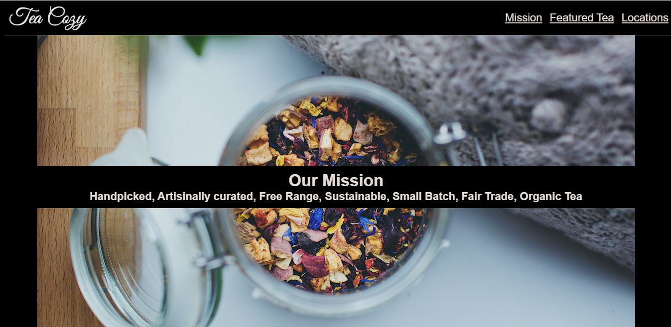 Who doesn't love tea? Sure, it's a fictional tea shop but I still created a website for it by using a design spec that was provided by Codecademy and by using HTML and CSS.